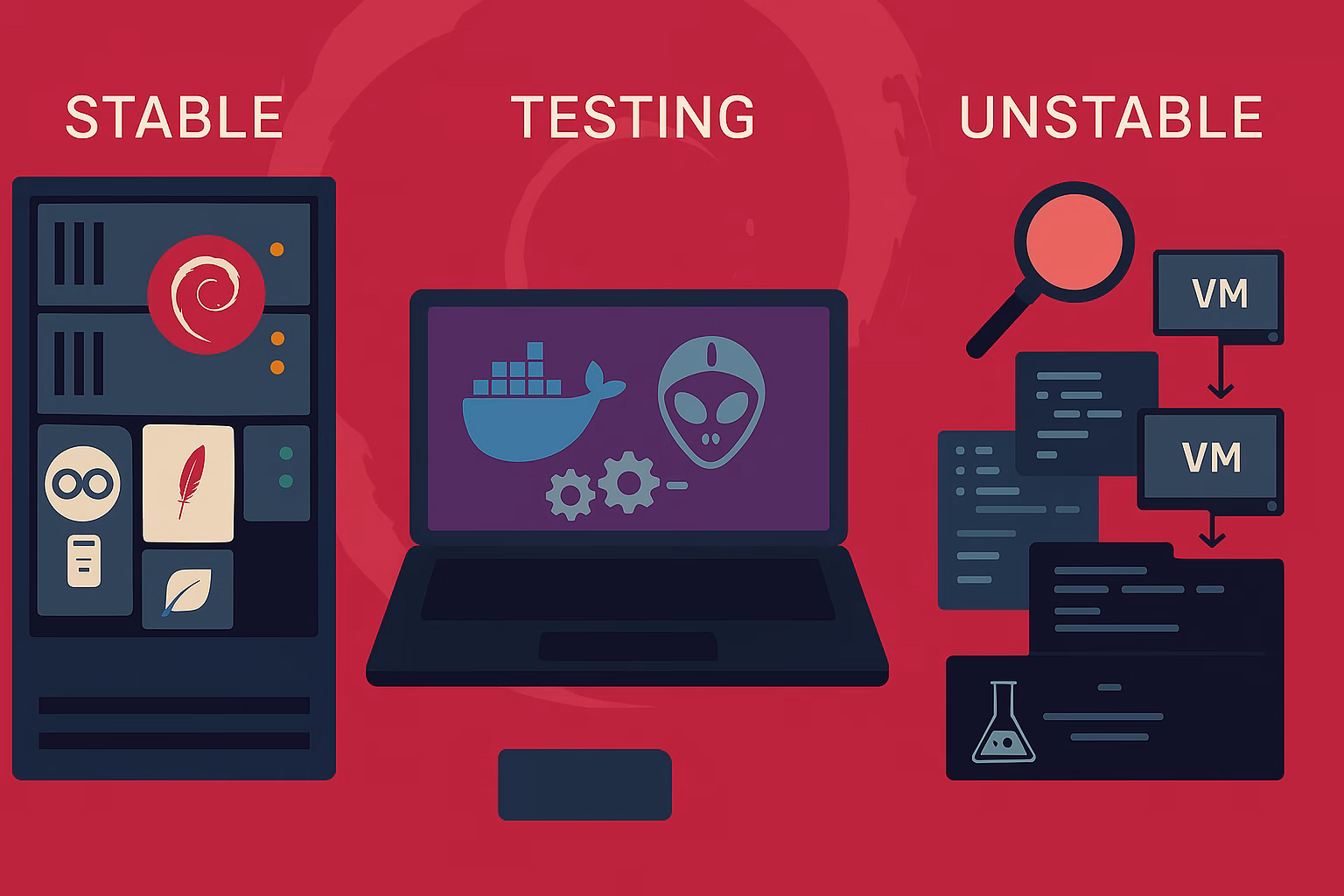 Testing ist die Vorstufe von Stable: deutlich aktuellere Pakete als Stable, aber mit spürbarer Qualitätskontrolle. Geeignet, wenn moderne Stacks benötigt werden, ohne ganz auf Unstable zu gehen.