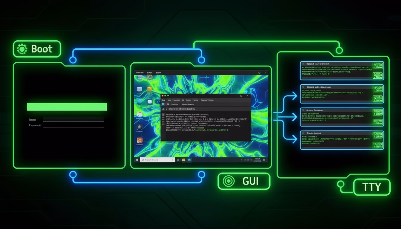 Als Systemadministrator triffst du oft auf Situationen, in denen du eine Shell brauchst, aber der Weg dorthin variiert je nach Systemzustand und Anforderung. Du kannst direkt ohne Desktop in eine Shell booten, einen Terminal-Emulator in einer grafischen Umgebung nutzen oder auf virtuelle Terminals (TTYs) wechseln. Jeder Ansatz hat spezifische Einsatzbereiche: Direkter Boot ohne GUI eignet sich für Server oder Troubleshooting ohne Ressourcenverbrauch, Terminal-Emulatoren für tägliche GUI-Nutzer, und TTYs für schnelle Wechsel bei Problemen.